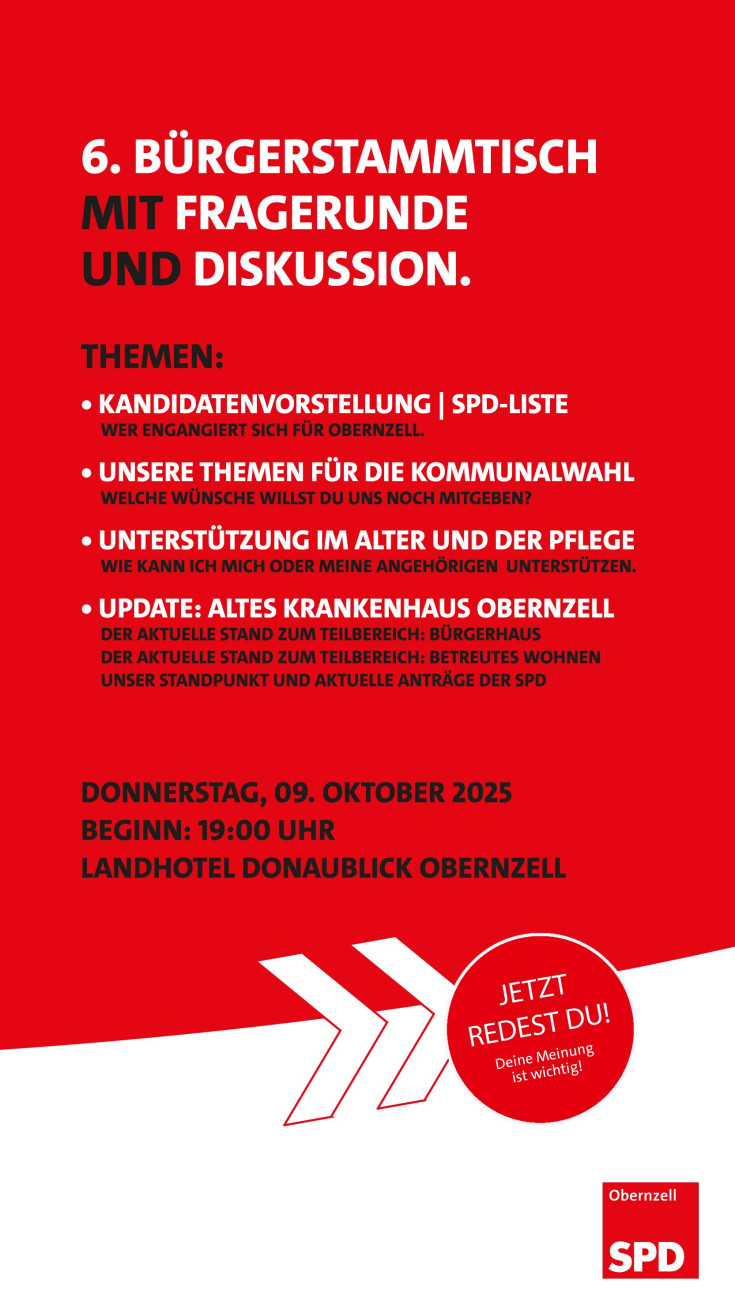 Die nächste Bürgerstammtisch ist bereits am DO 23.10.2025 im Bürgerhaus Nottau. 👍