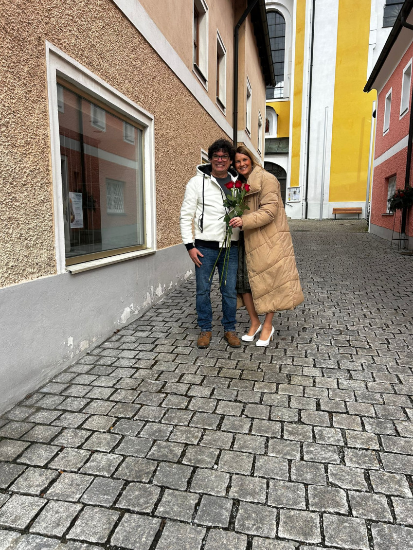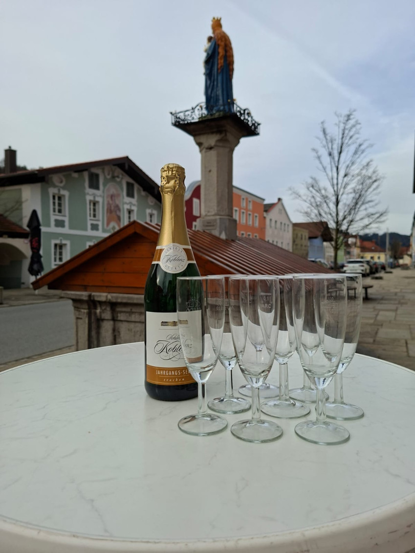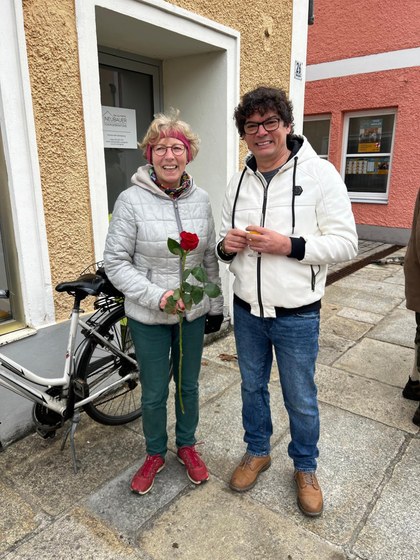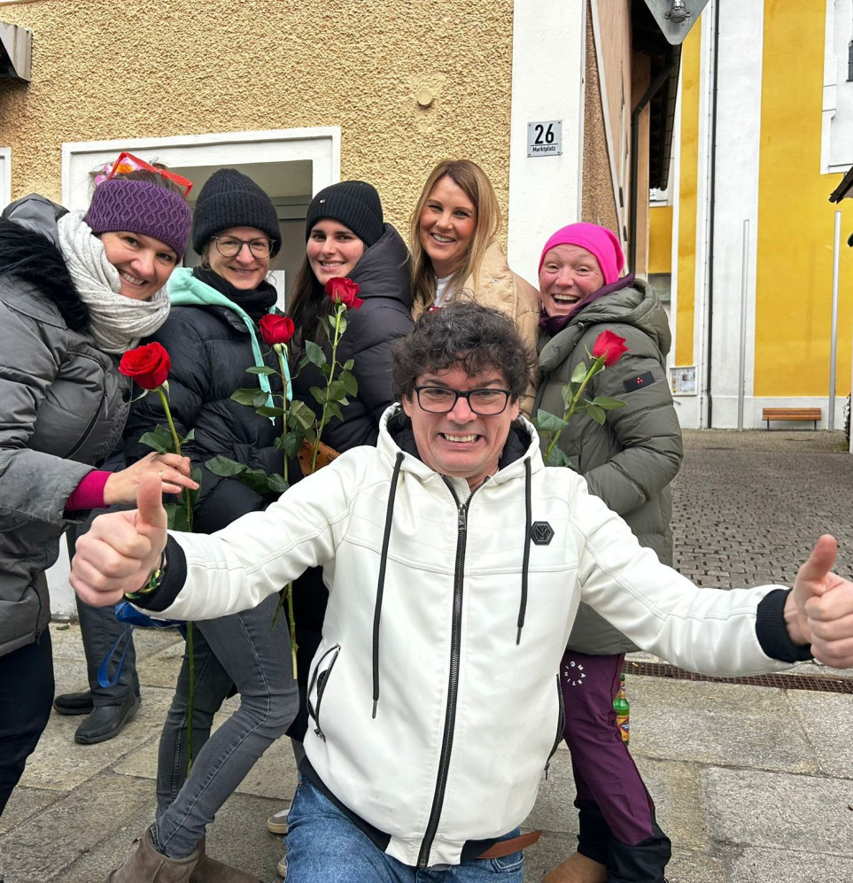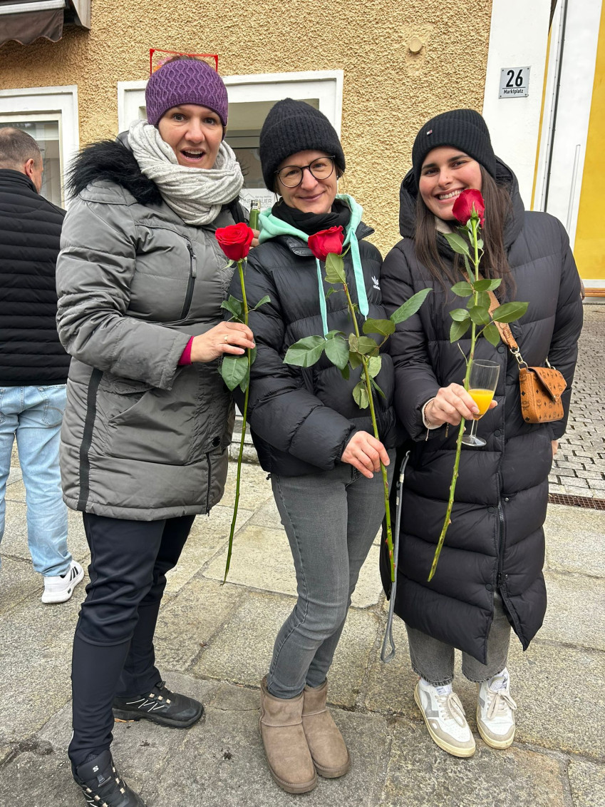 Mit einem Glaserl Sekt 🥂🍾 und wunderschönen roten Rosen 🌹wurden die Damen von Bürgermeisterkandidat Stefan Liebl begrüßt!