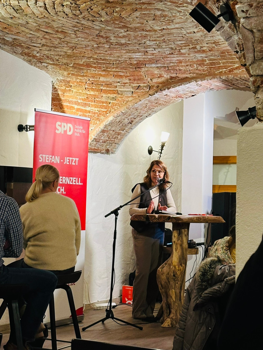 Marktgemeinderätin Sandra Wietscher eröffnete den Abend, hieß die Gäste willkommen und gab einen Ausblick auf die bevorstehenden Termine bis zum Wahltag. Sie betonte die Bedeutung des direkten Austauschs mit der Bevölkerung in der heißen Phase des Wahlkampfs.